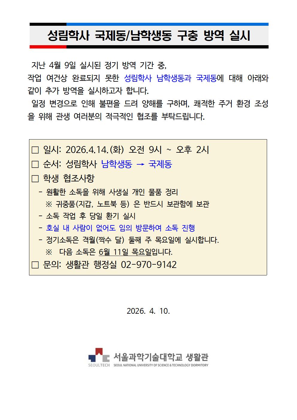 KB학사 드럼세탁기 분해·세척 작업 안내 (2026. 4. 20. ~ 4. 24.)