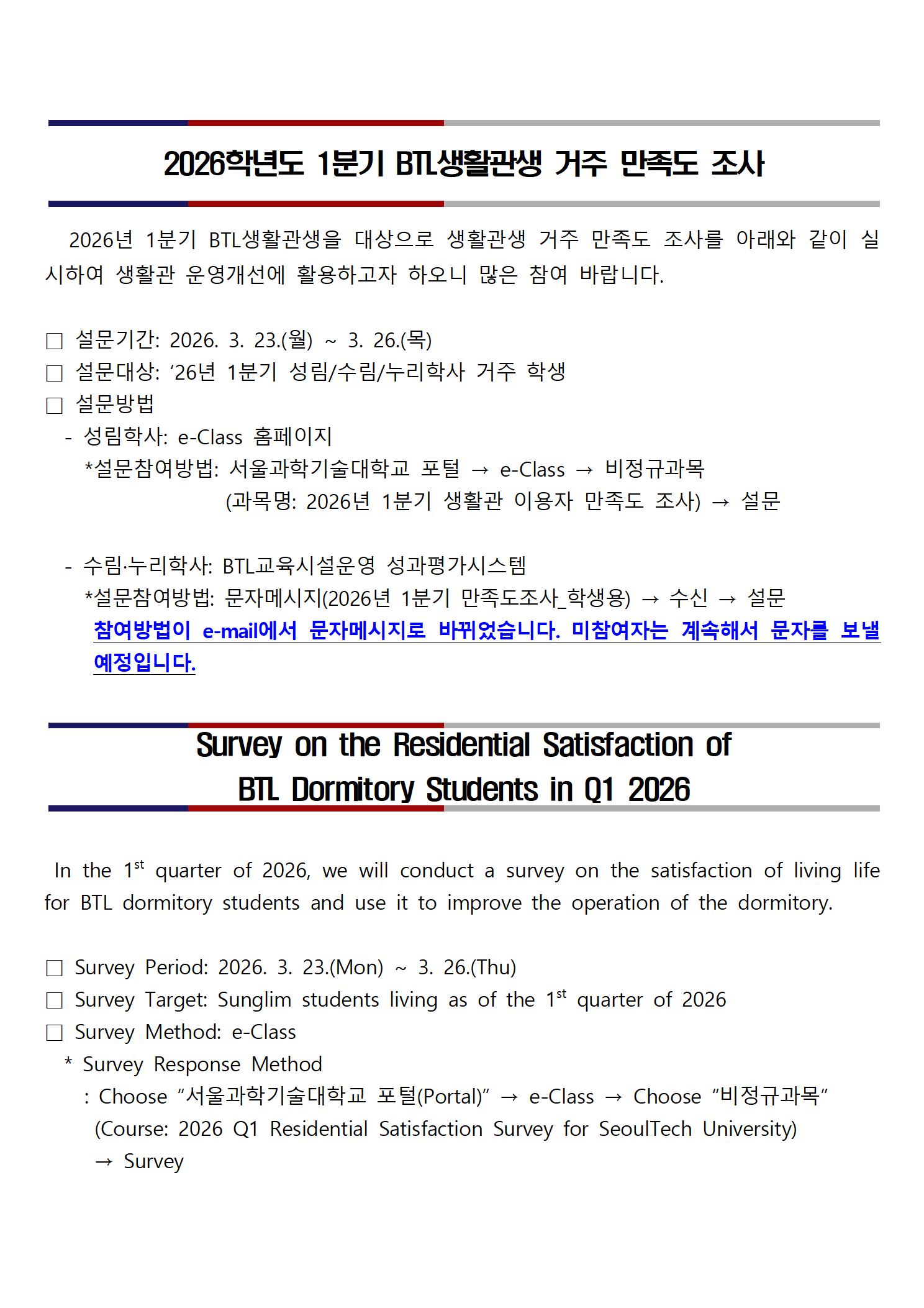 2026 생활관 화재대피훈련 도우미 모집 Recruiting Student Safety Assistants